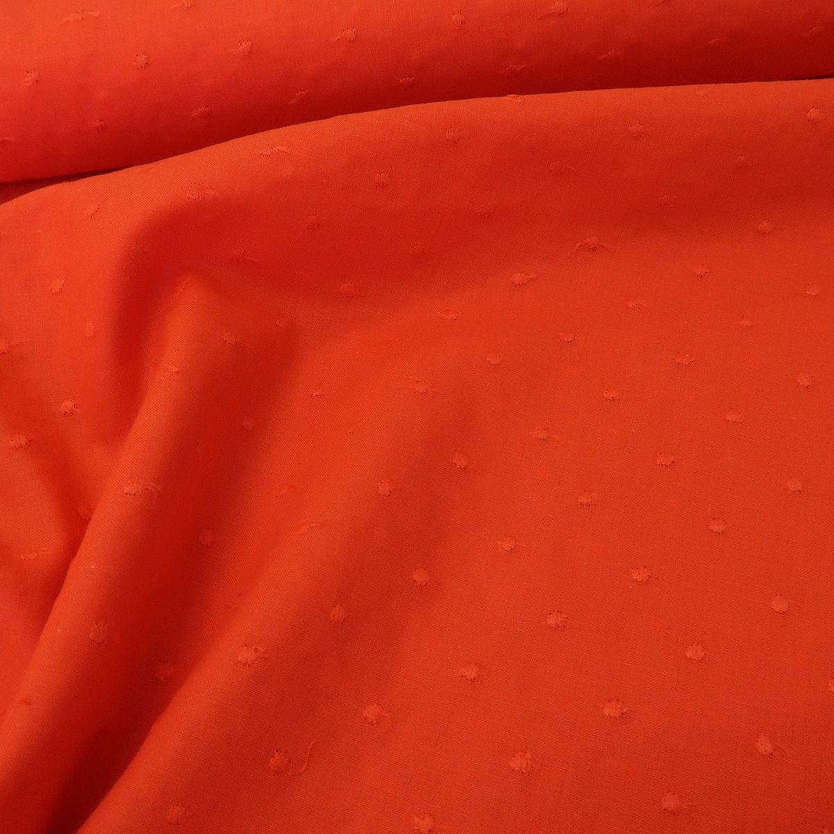 Batist červený s vyšívanými puntíky je lehoučká, letní látka o gramáži cca 80 g/m2.