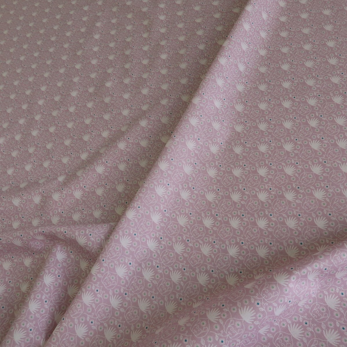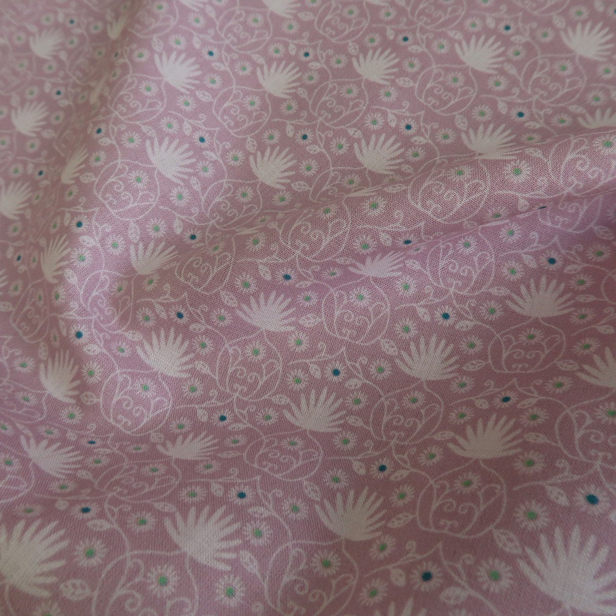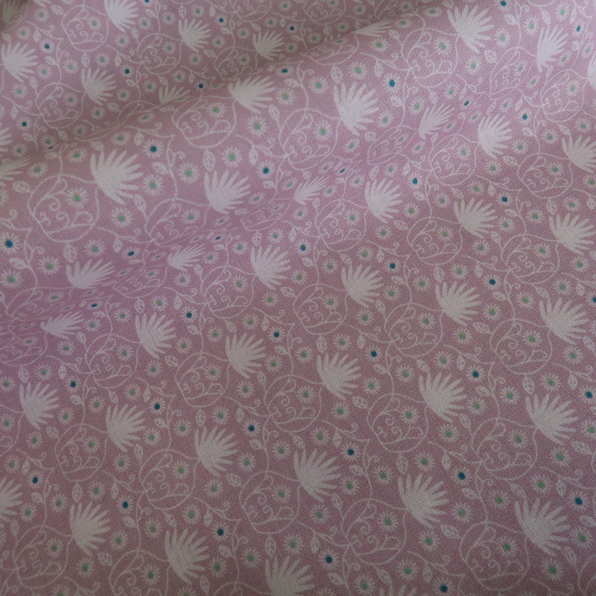 Batist růžový s drobnými lotosovými kvítky je lehoučká košilová látka o gramáži cca 80 g/m2.