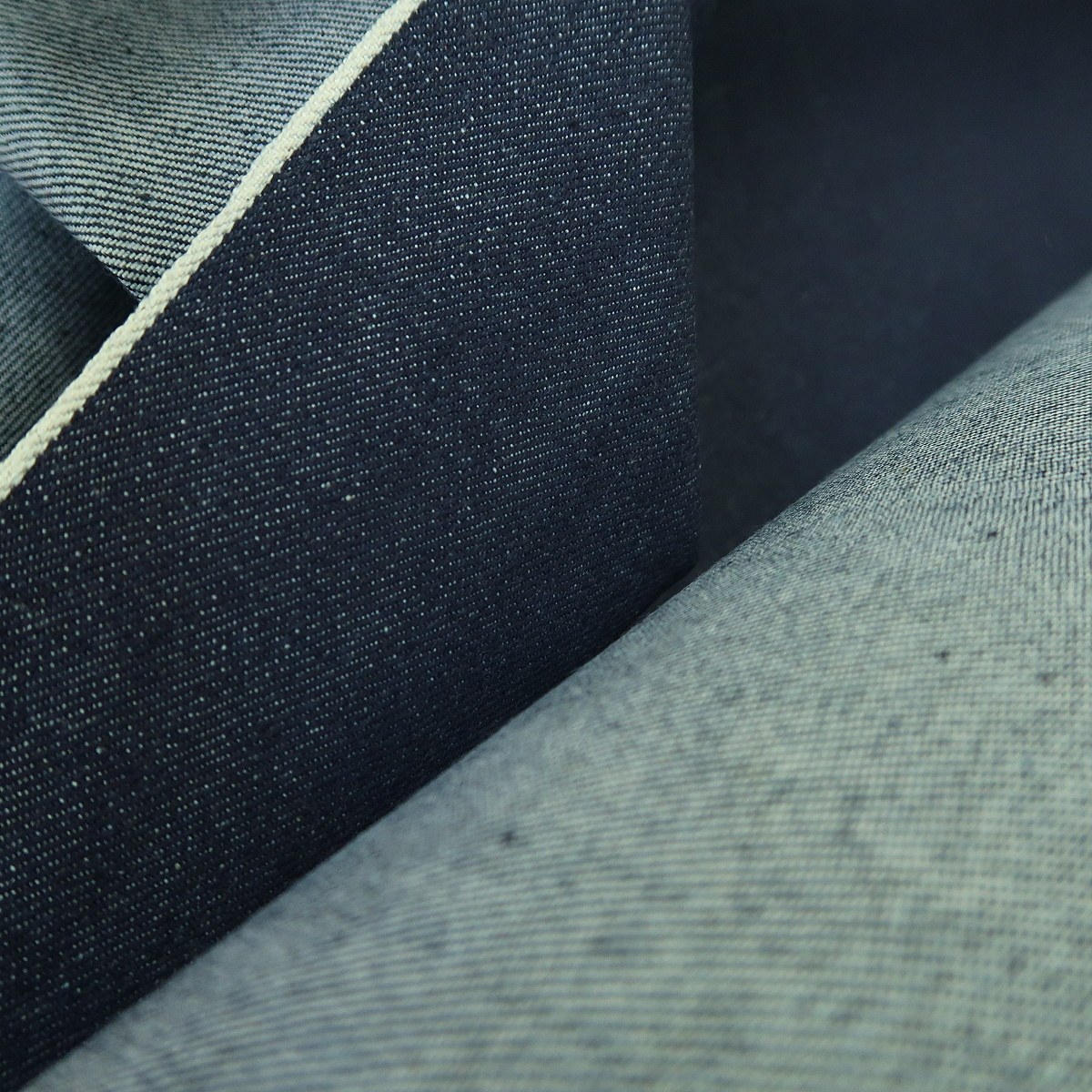 Denim modrý japonský je pevnější klasická jeansovina vhodná na kalhoty a bundy. Japonské denimy se vyznačují malou šíří a ozdobným proužkem v kraji látky. Gramáž je cca 470 g/m2.