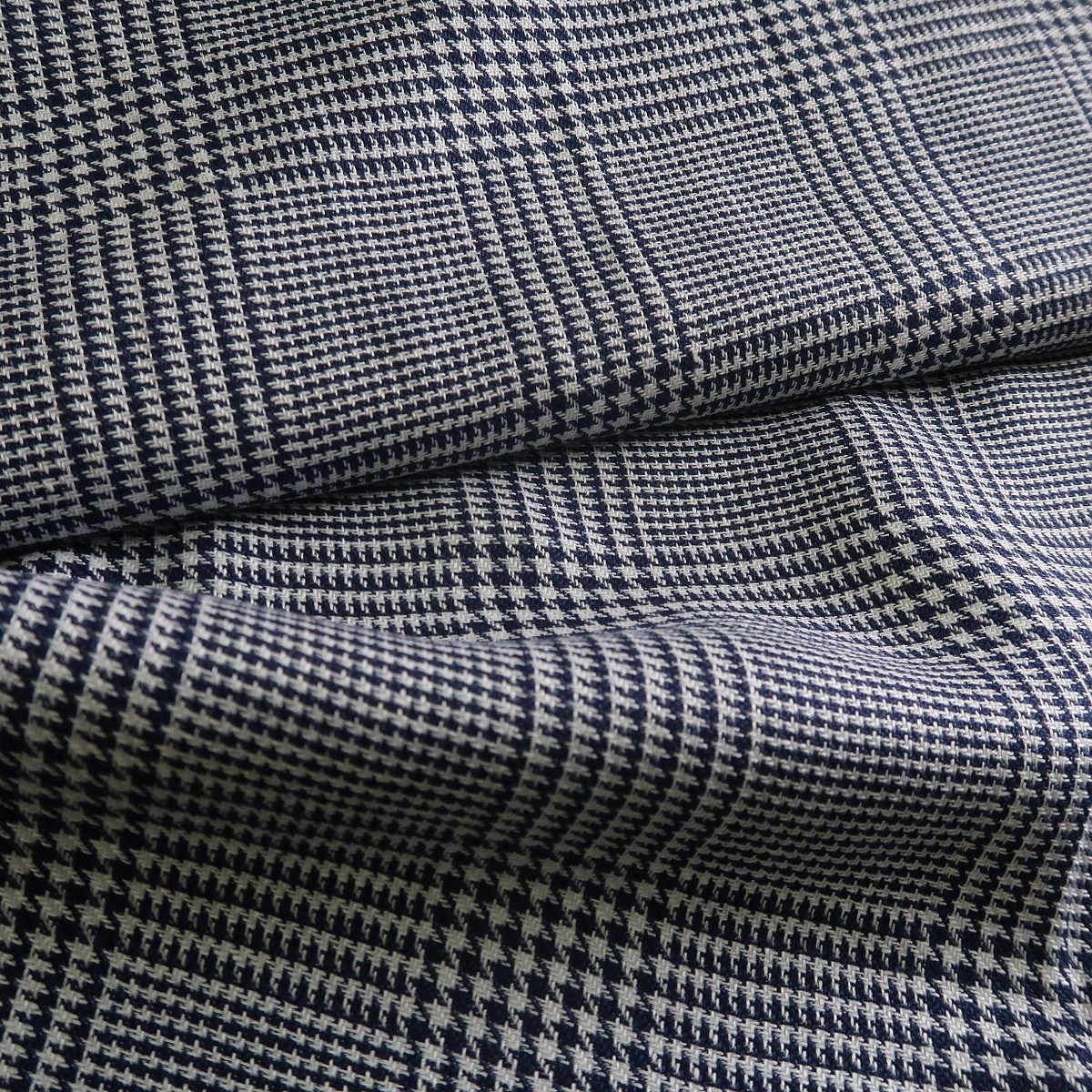 Homspen s modro-bílou kohoutí stopou a glenčekovou kostkou lněný kostýmový je látka vhodná na ležérní letní saka, bundičky kalhoty. Gramáž je cca 250 g/m2.
