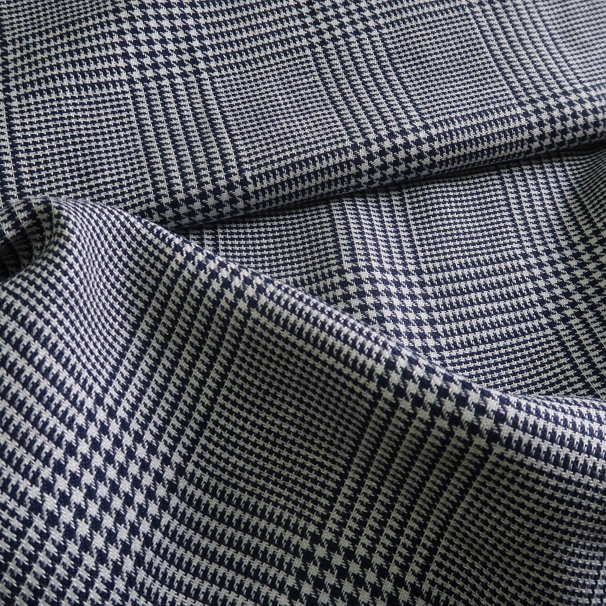 Homspen s modro-bílou kohoutí stopou a glenčekovou kostkou lněný kostýmový