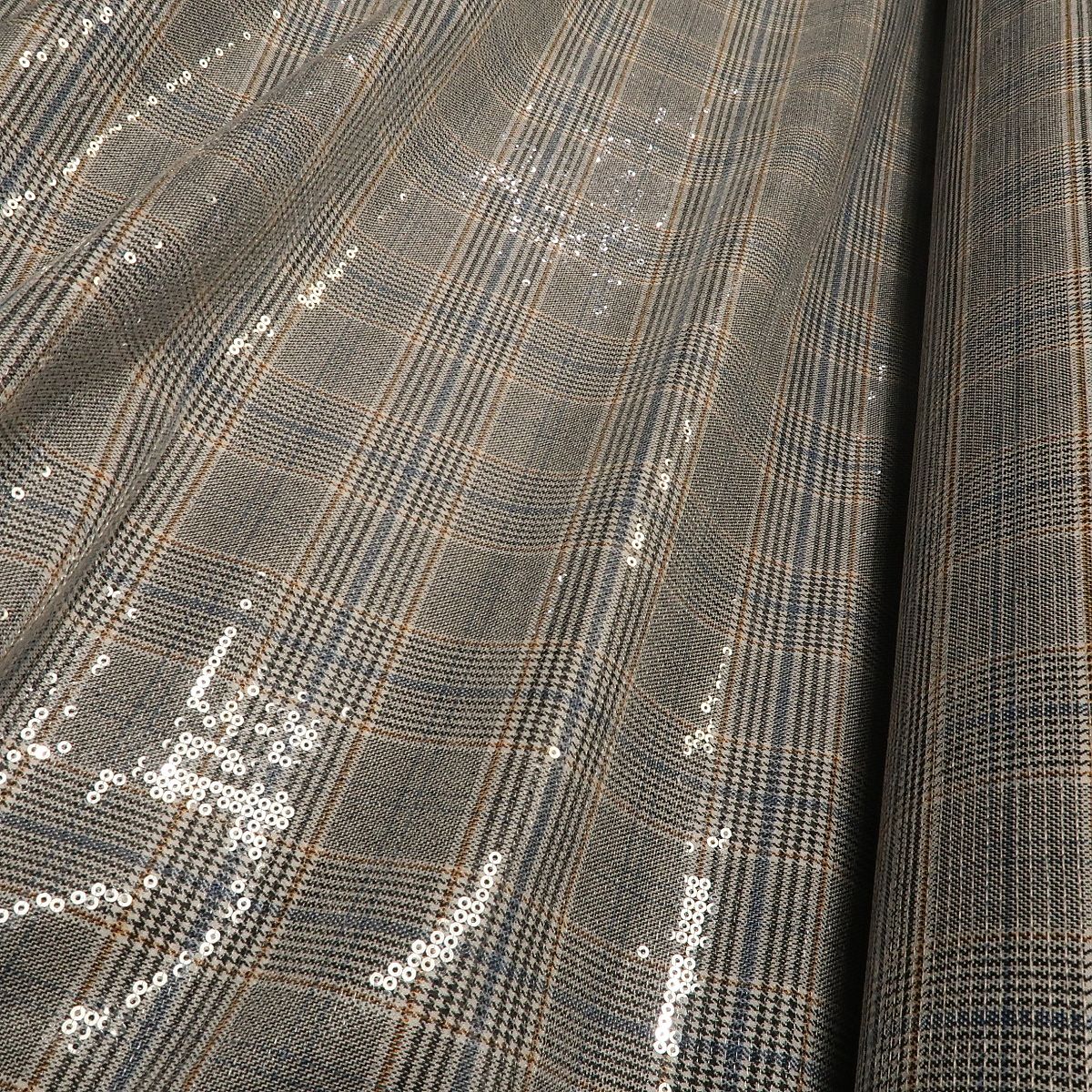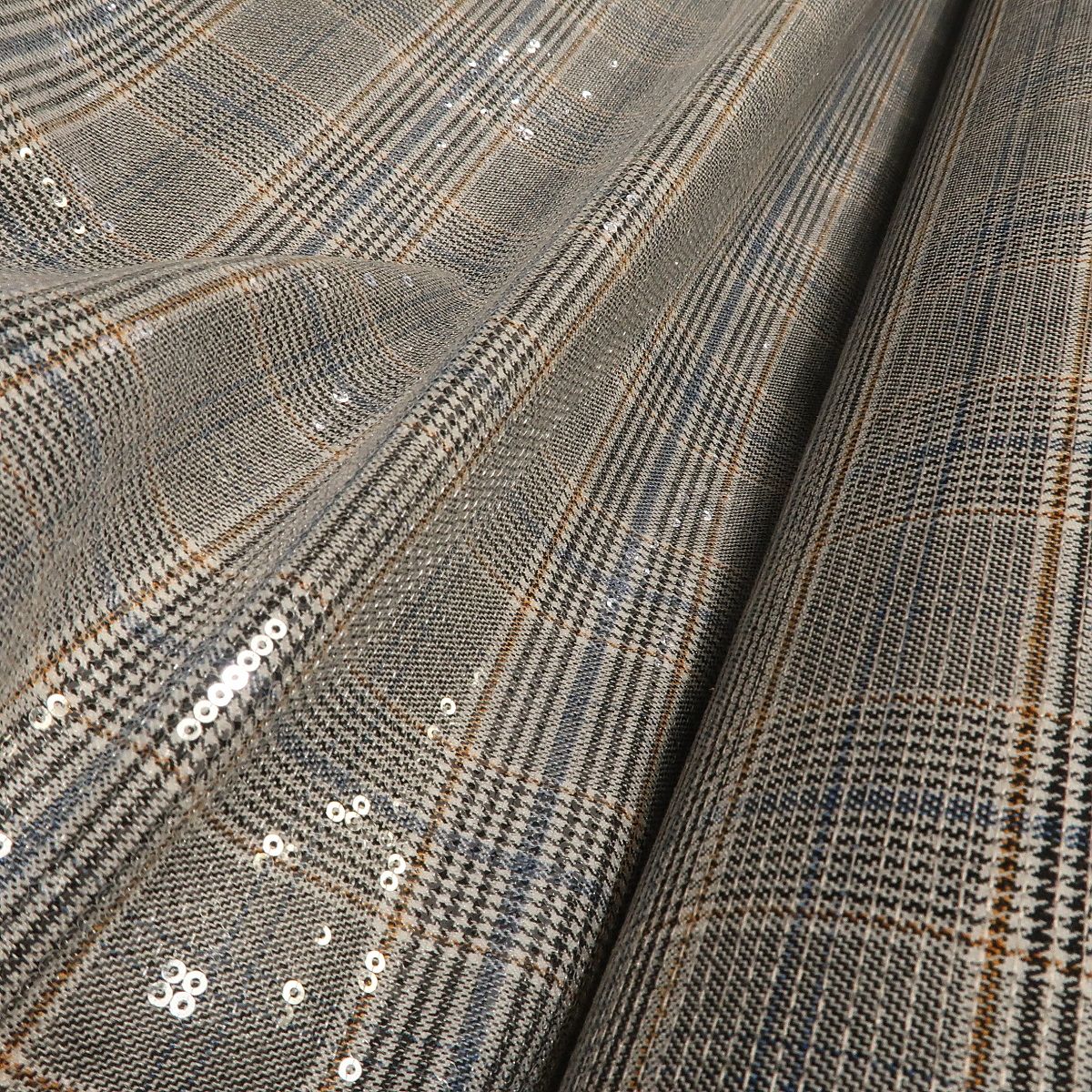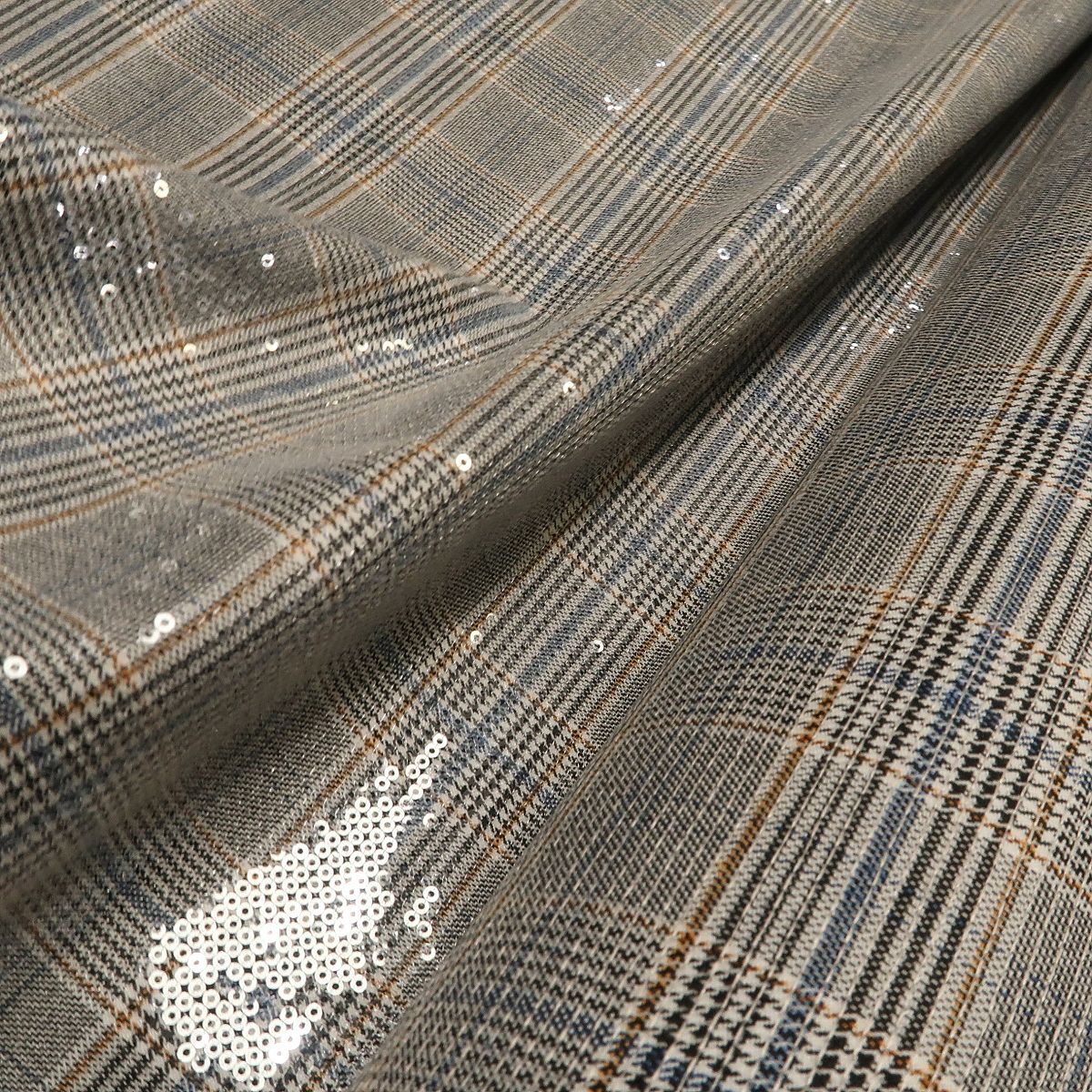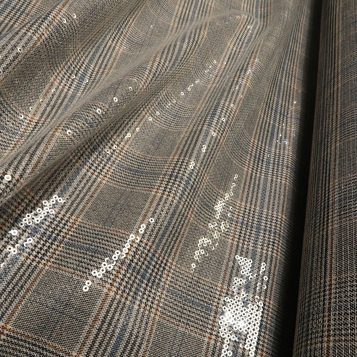 Kostýmovka černo-bílý glenček s průhlednými flitry je efektní látka, která se při pohybu krásně leskne. Má mokrý efekt.