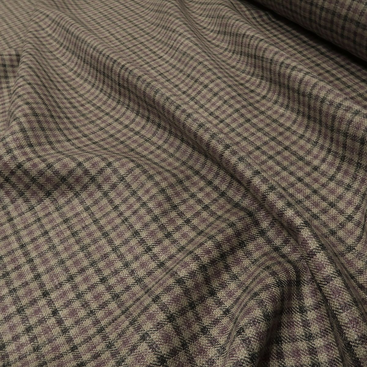 Kostýmovka šedá s fialovo-antracitovým pepitem ze lne a hedvábí je látkou ideální a lehké letní kostýmky, kalhoty nebo sukně a nebo i šaty. Gramáž je cca 170 g/m2.