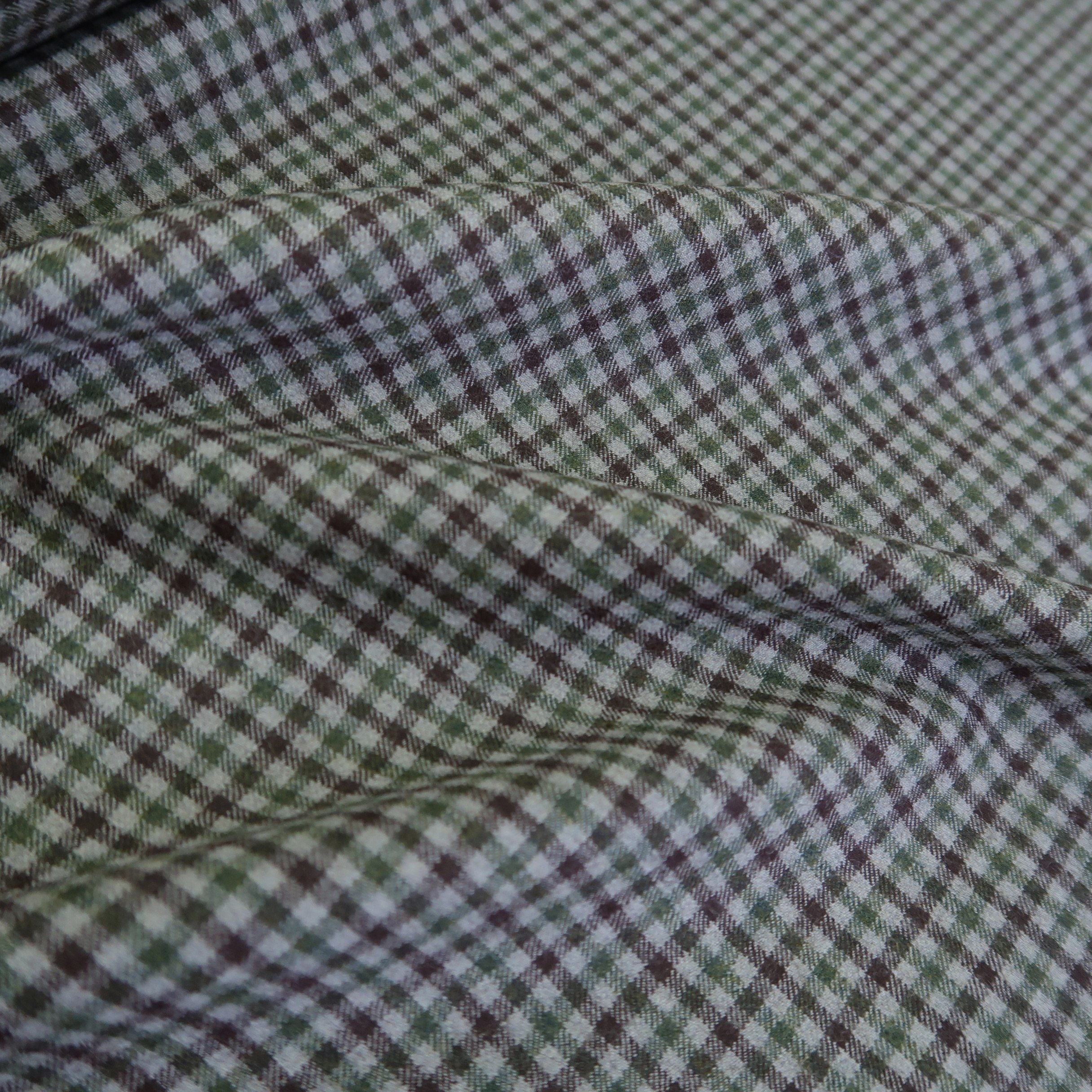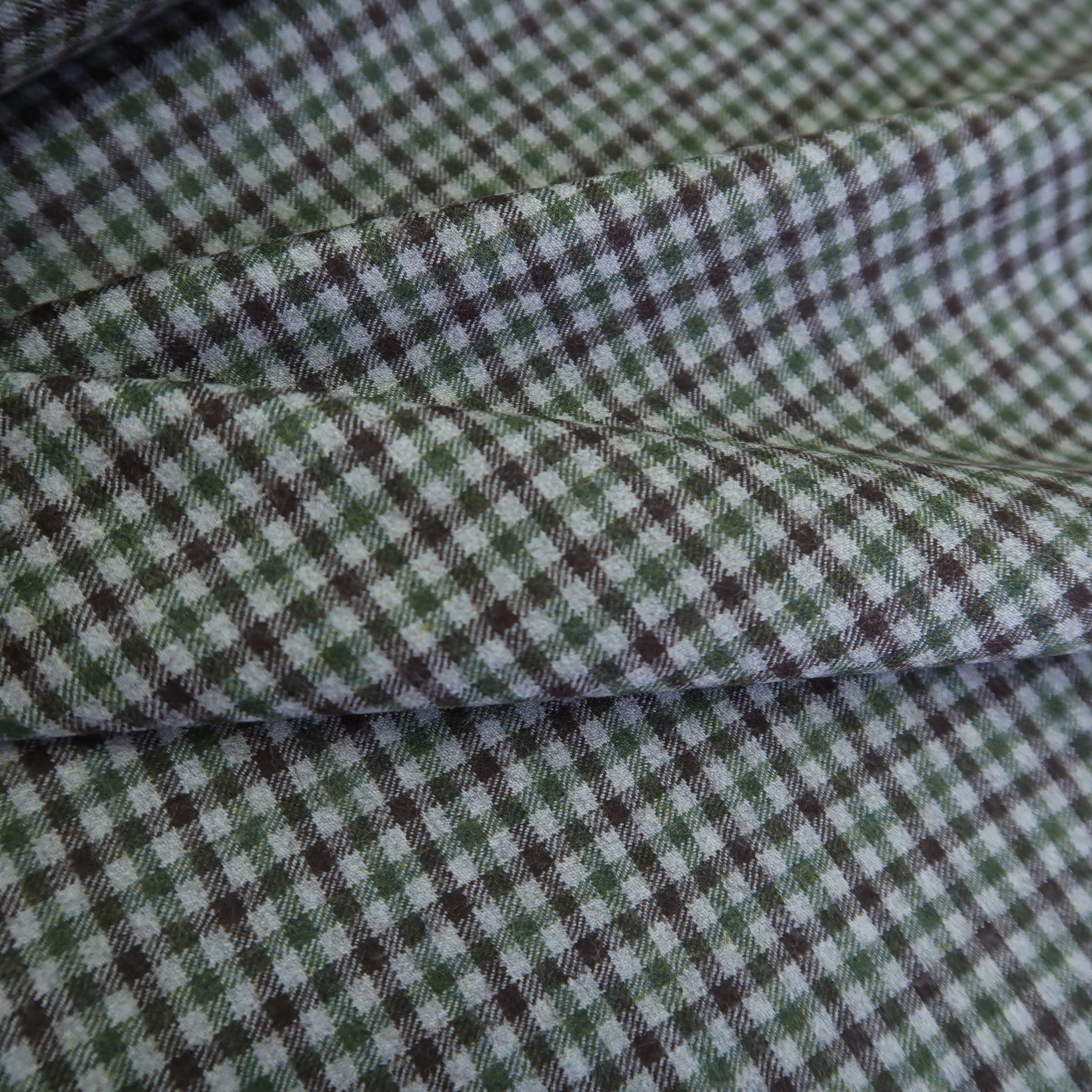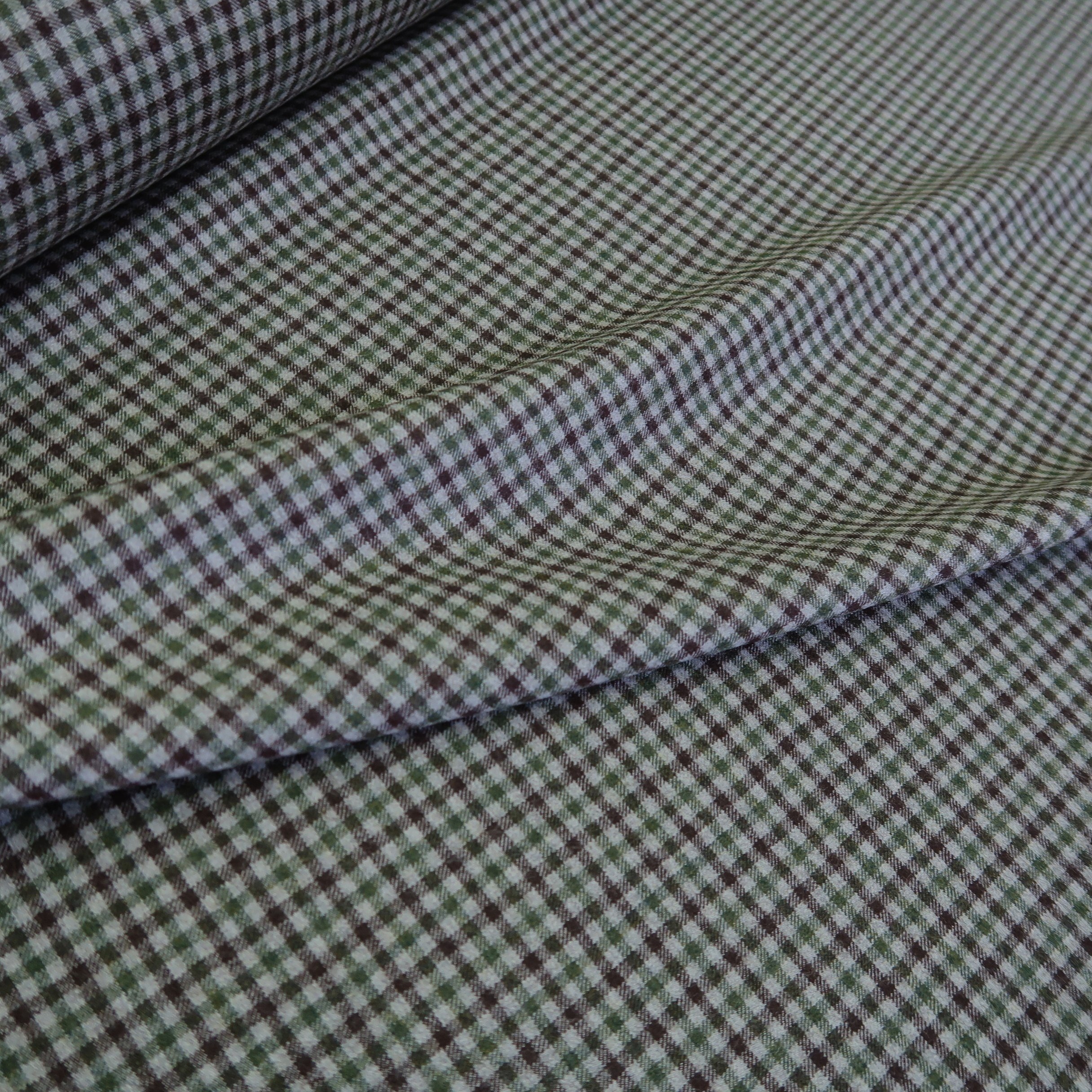 Kostýmovka šedá s vínovou a zelenou drobnou kostkou má krásný flanelový omak. Veliost kostek je cca 0,5 cm x 0,5cm.