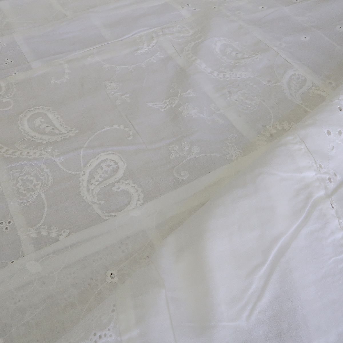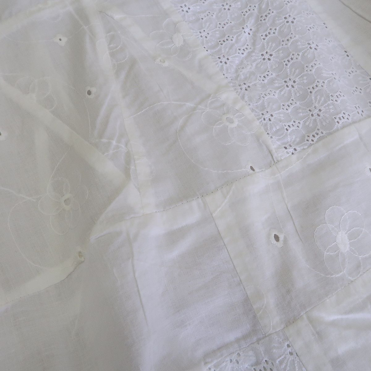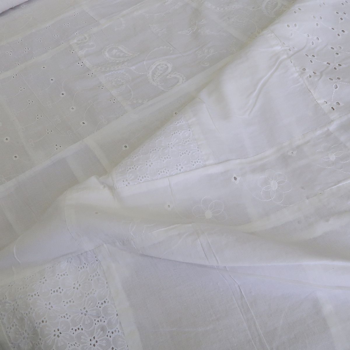 Madeira bílá á la patchwork má základ na bílém batistu. Je to lehká, letní látka.