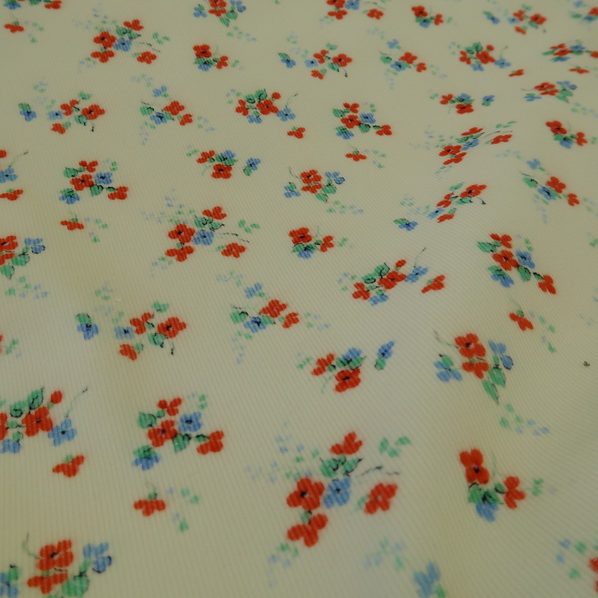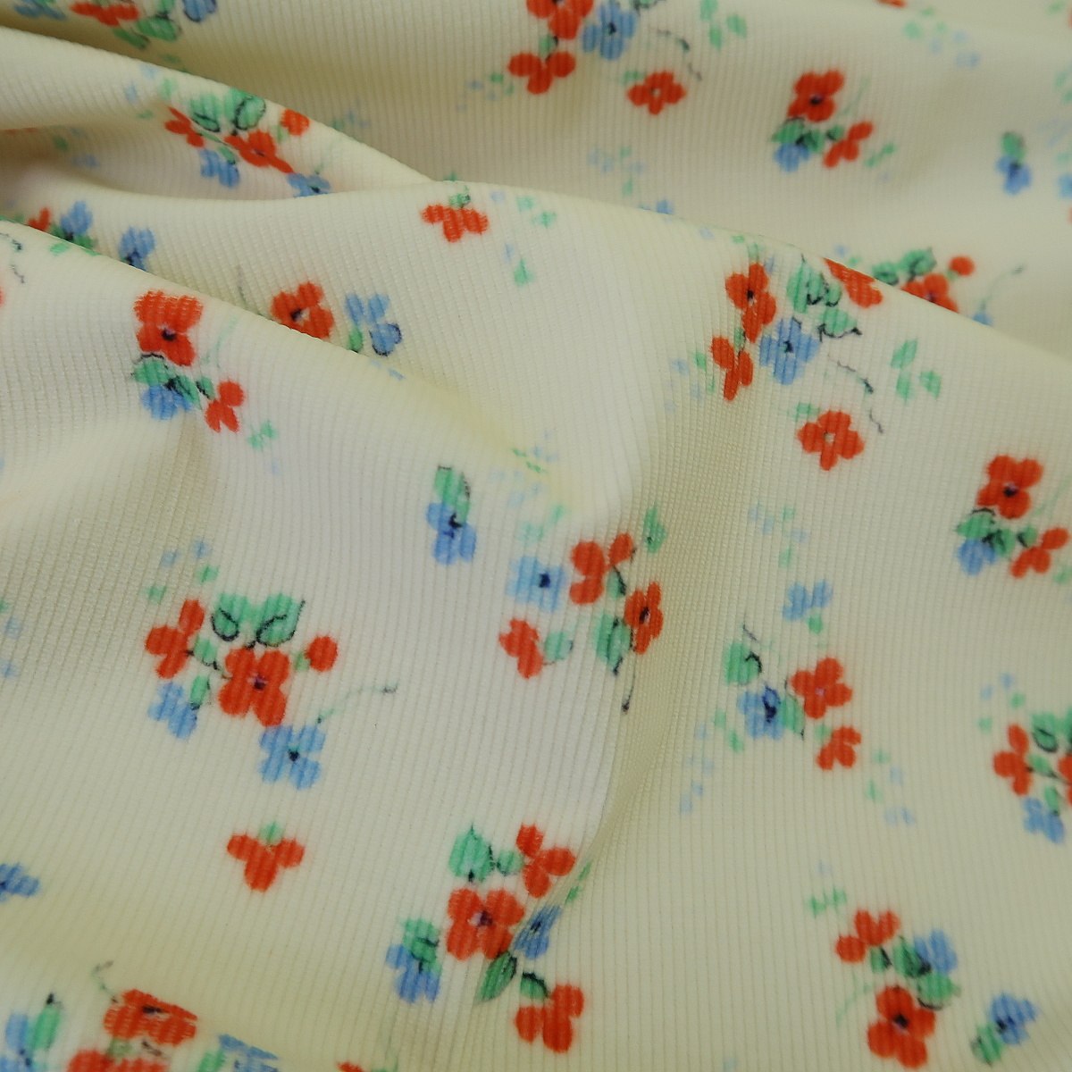 Manžestr smetanový s drobnými květy je neprůhledná, pružná látka. Po vyprání látku můžete načechrat v sušičce. Sametům a manžestrům sušičky vyhovují – změknou a načechrají se.