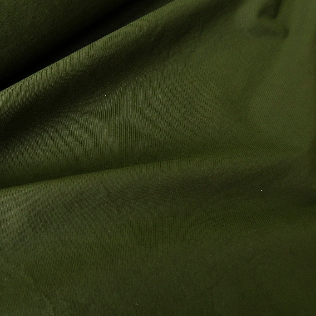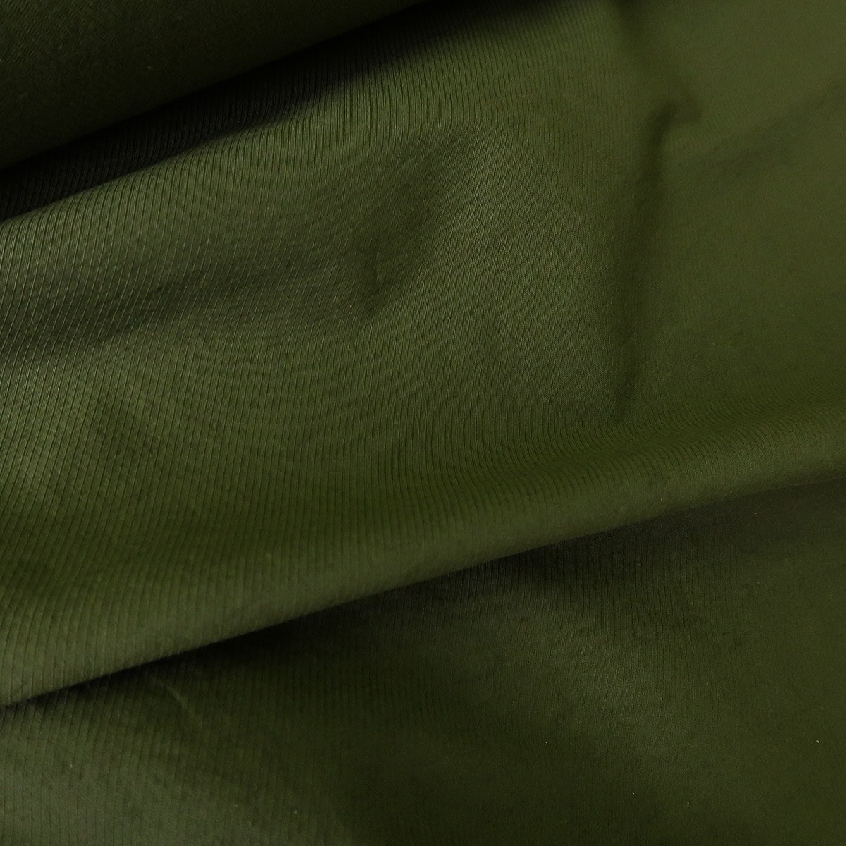 Plášťovka khaki zelená je látka pevnější, šustivá s viditelnou keprovou vazbou. Není voděodolná, je vhodná na větrovky nebo jarní pláštíky. Gramáž je cca 160 g/m2.