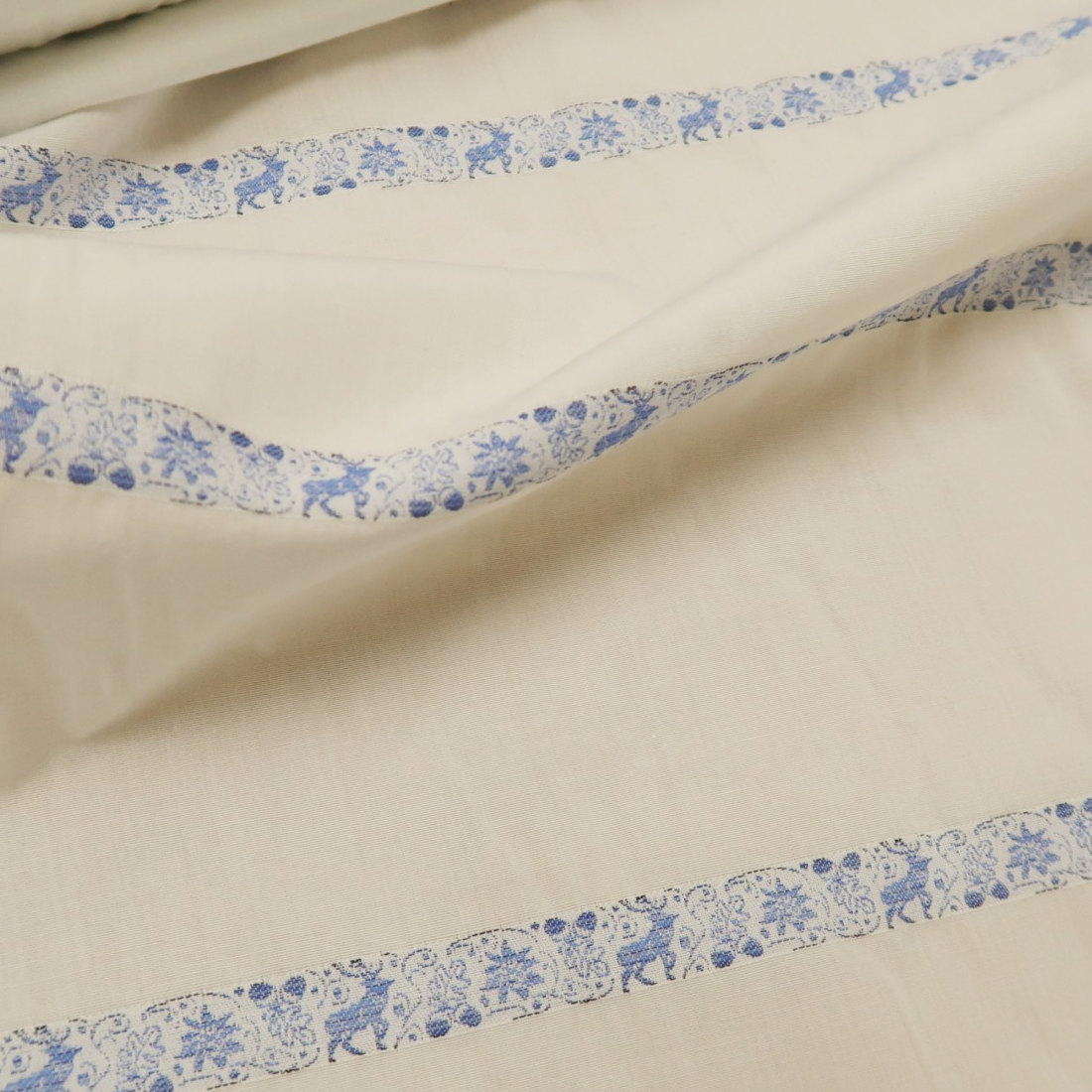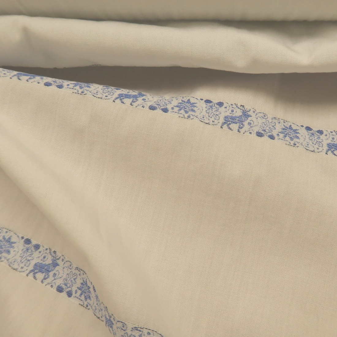 Plátno bílé s modrým žakárovým vzorem