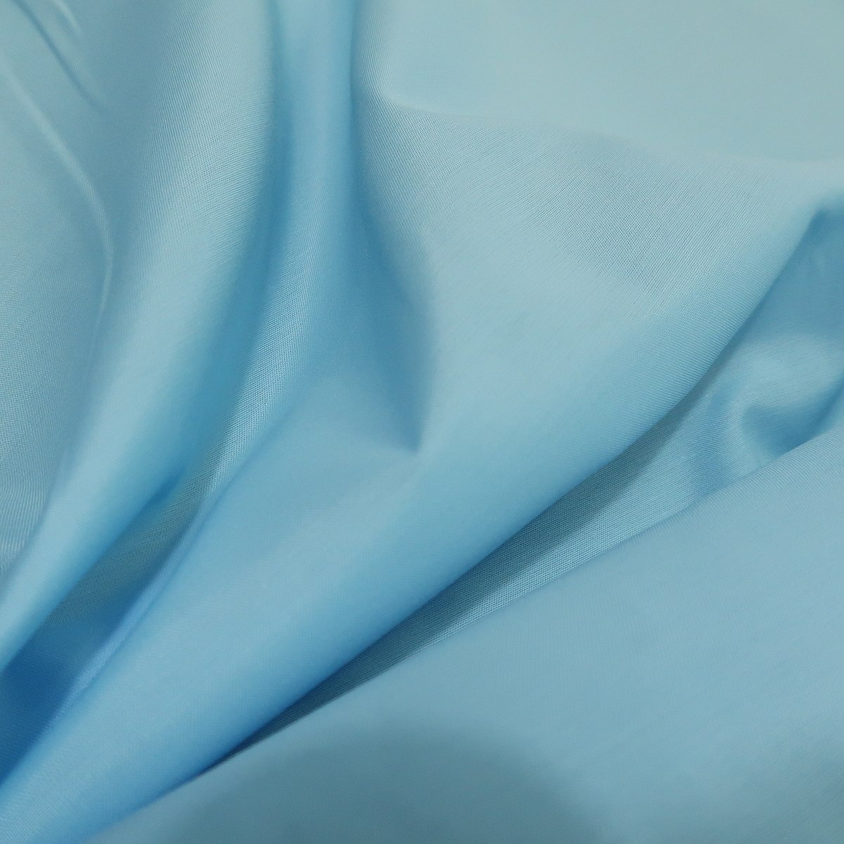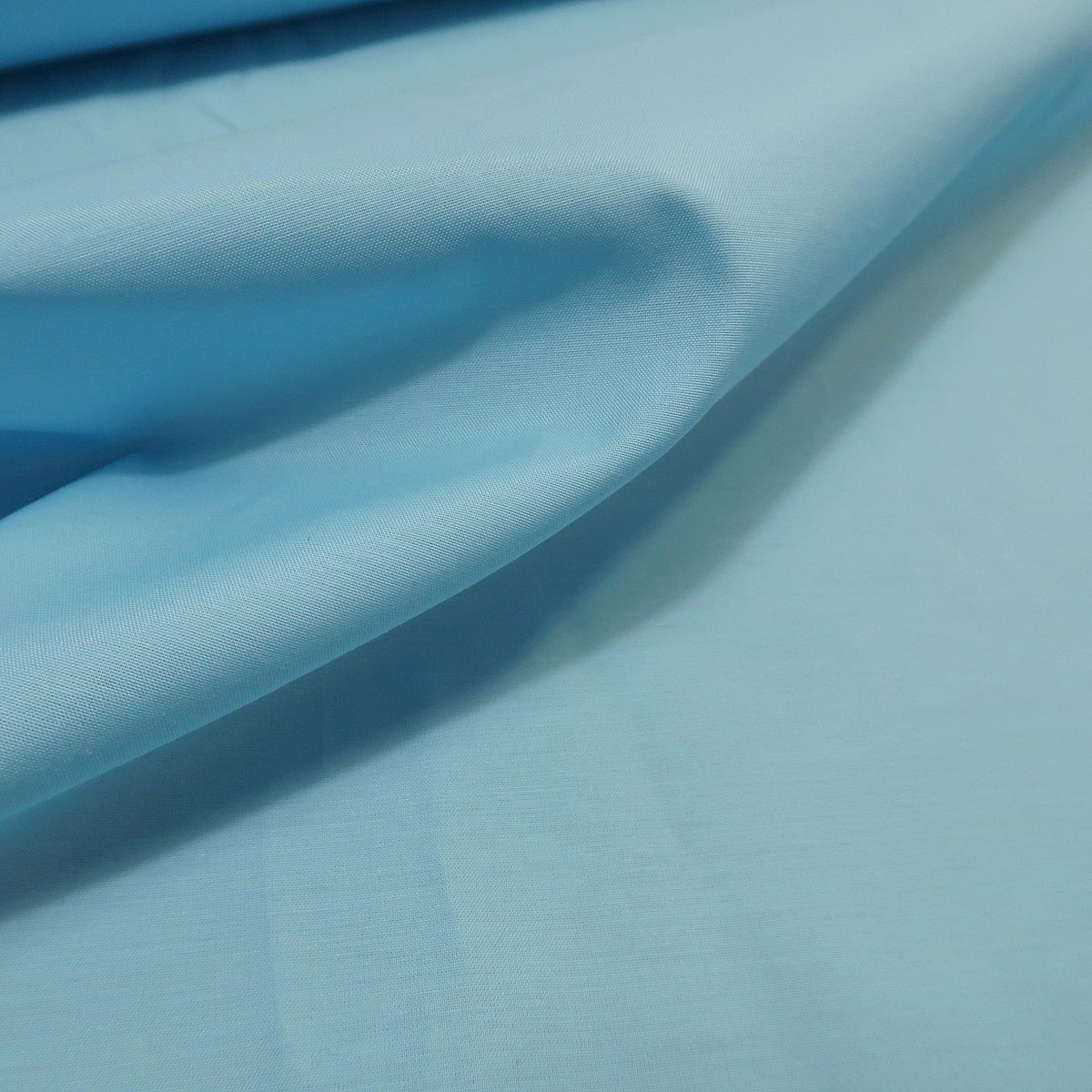 Plátno světle modré s jemným leskem má zesílené útkové nitě. Ale je jemnější než ryps. Látku je nutno žehlit přes bavlněné plátno. Gramáž látky je cca 115 g/m2.