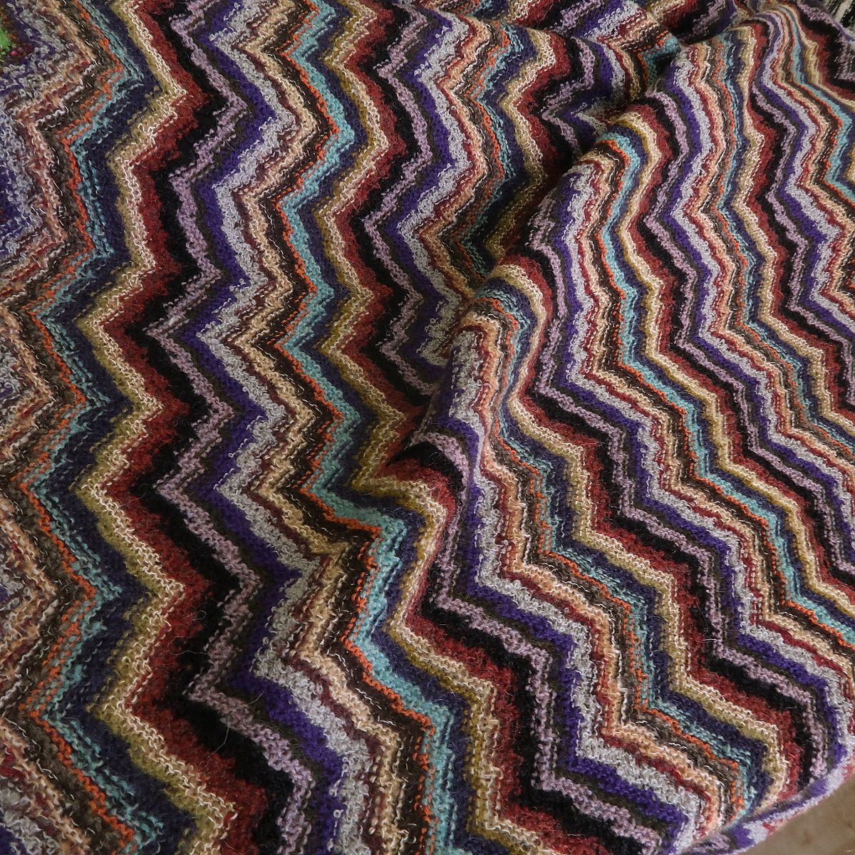 Pletenina barevná typu Missoni je vhodná na plédy, svetříky nebo i teplejší úpletové šaty.