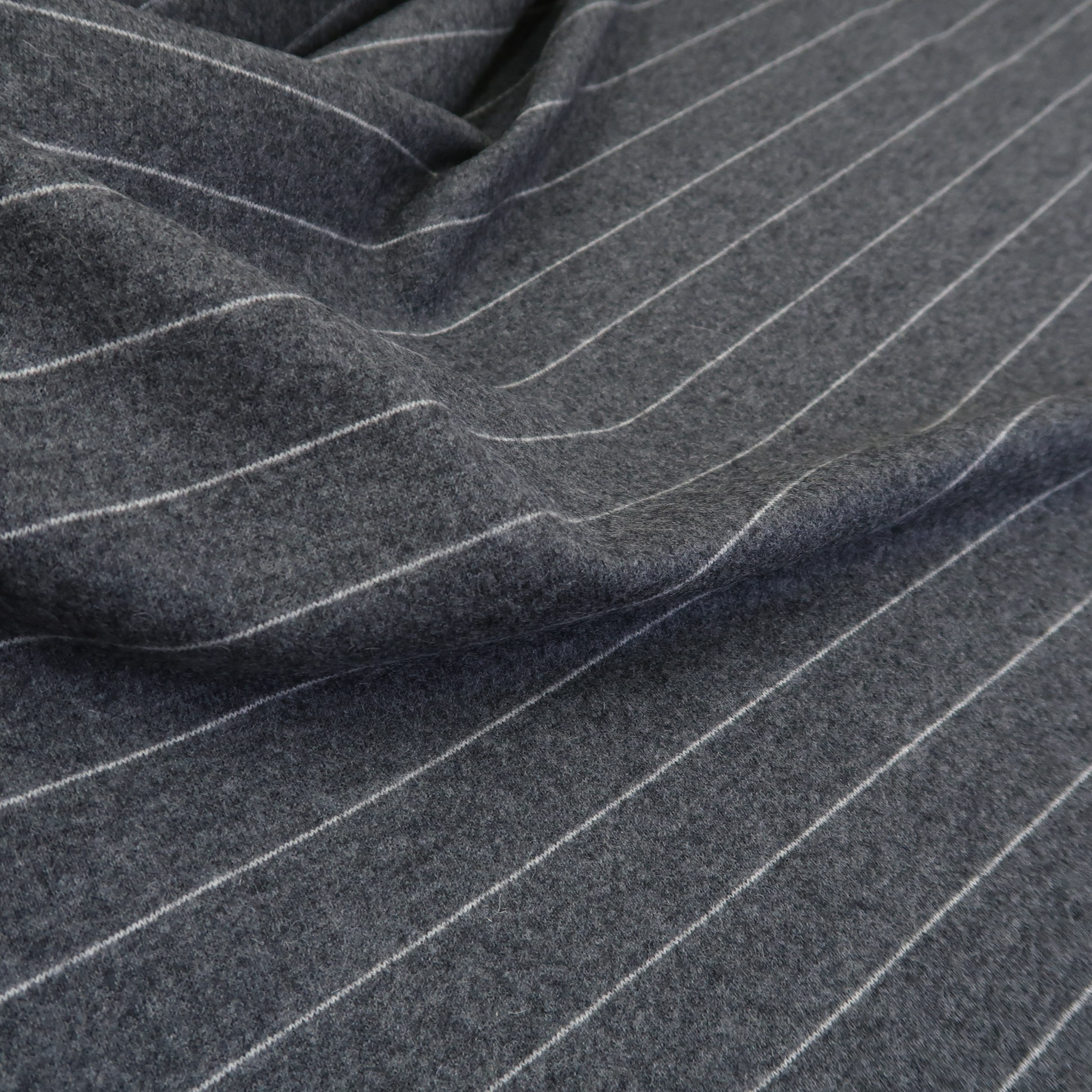 Pletenina šedá s proužkem tenká je látka vhodná na svetříky, roláky i šaty. Vzdálenost proužků je 3,00 cm.