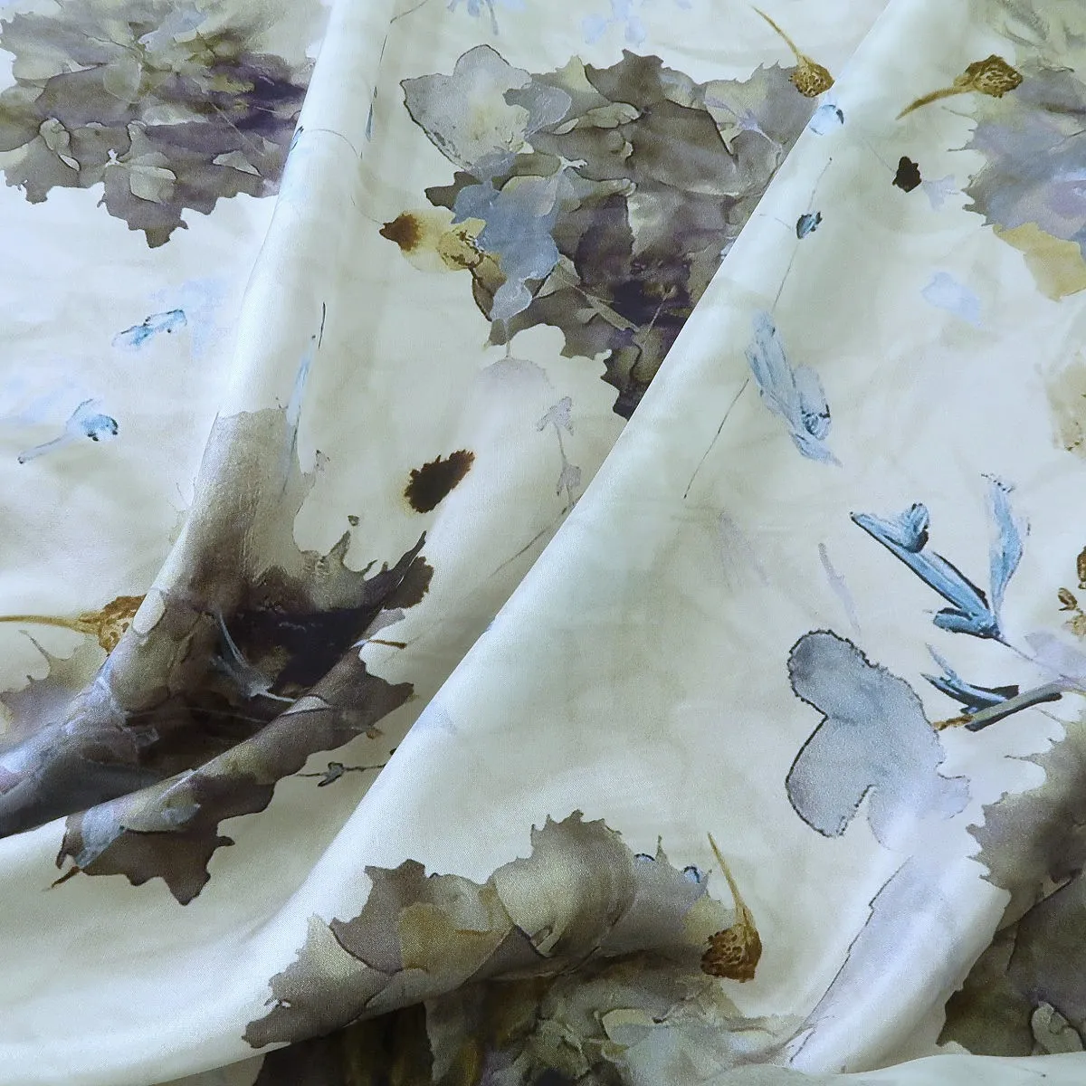 Ponžé bílé s květinovým vodovým vzorem