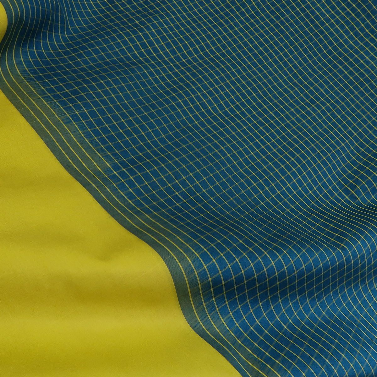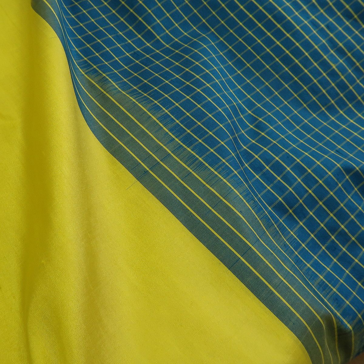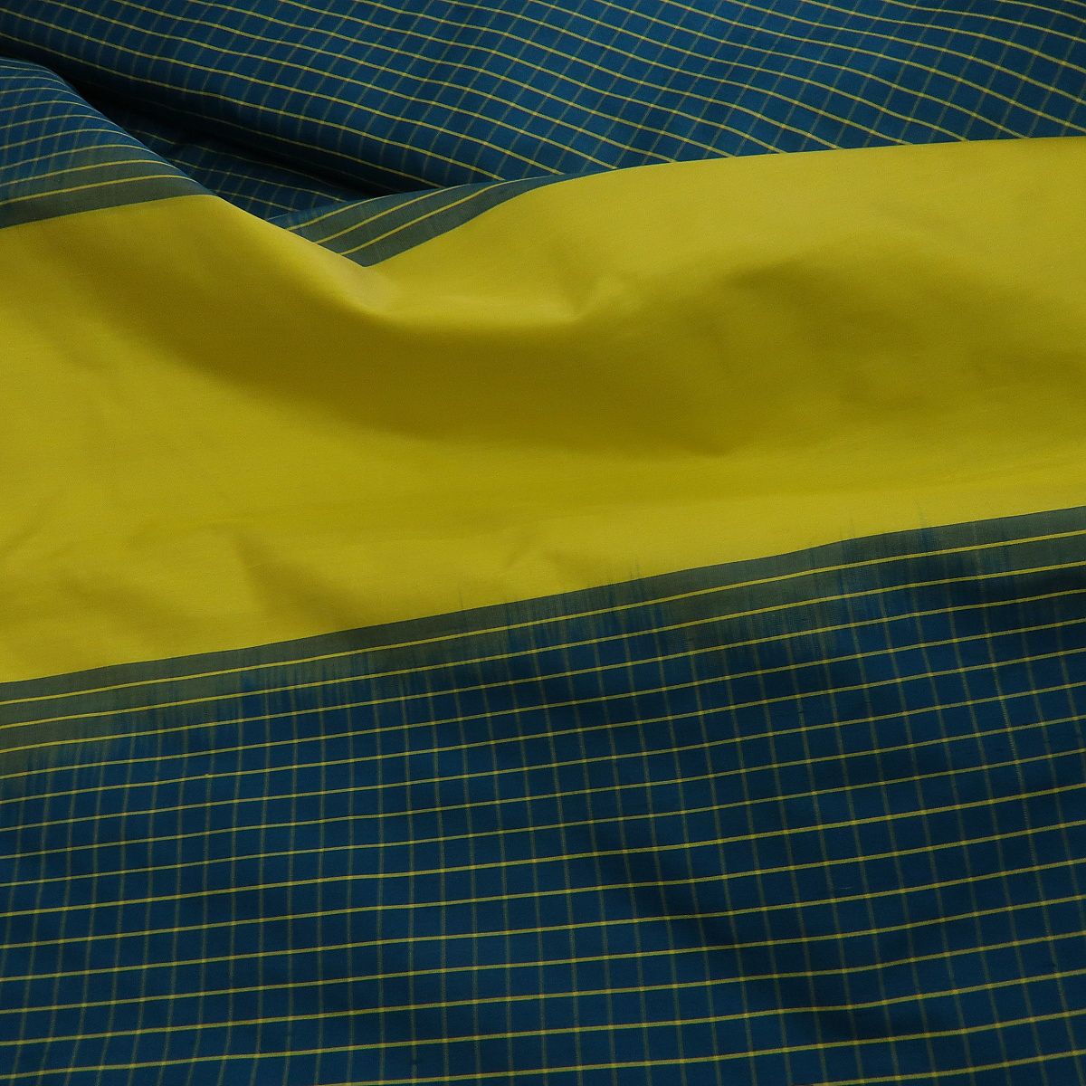Šantung tmavě tyrkysový se žlutými kostkami