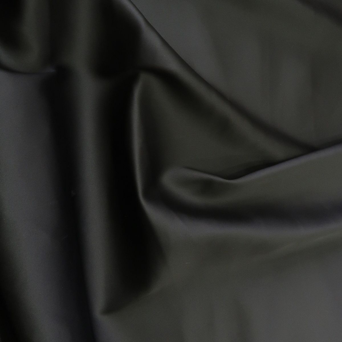 Satén černý s elastanem je pevná látka vhodná i na uplejší modely. Má větší gramáž. Hodí se na úzké šaty i sukně, na saka nebo naopak na nabírané bundičky či objemné sukně. Gramáž je cca 270 g/m2.