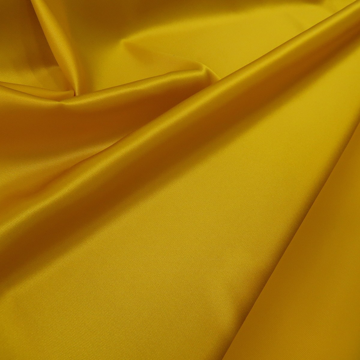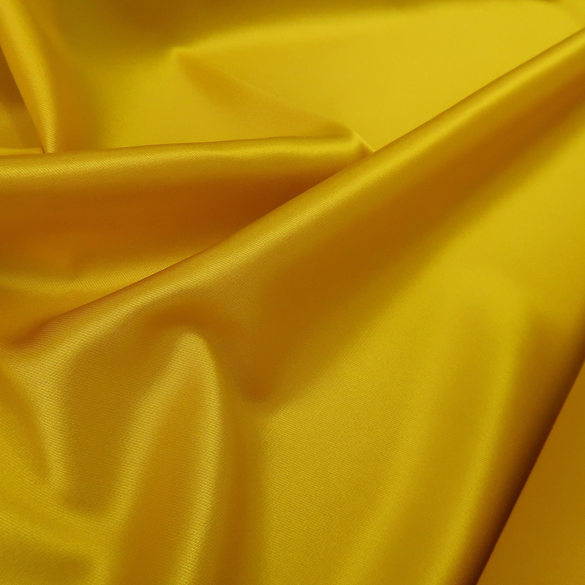 Serž žlutý s vyšším leskem je splývavá látka s elastanem. Gramáž je cca 100 g/m2.