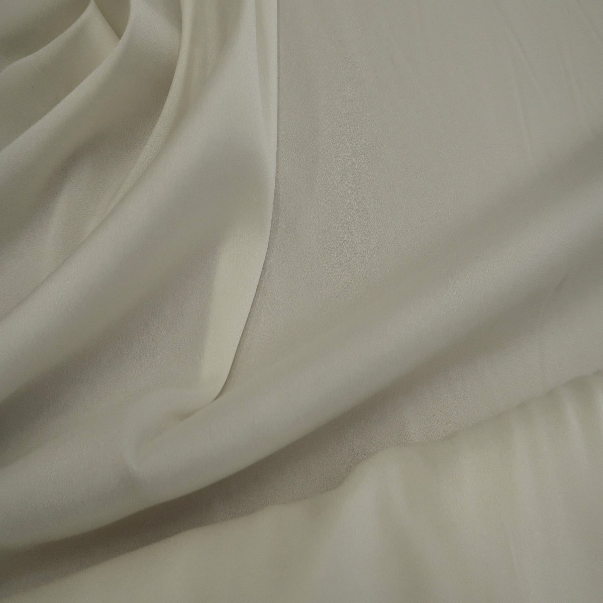 Šifon smetanový „zrnitý“ s elastanem má viditelnou žoržetovou zrnitou vazbu. Díky elastanu je vhodný i na uplejší modely.