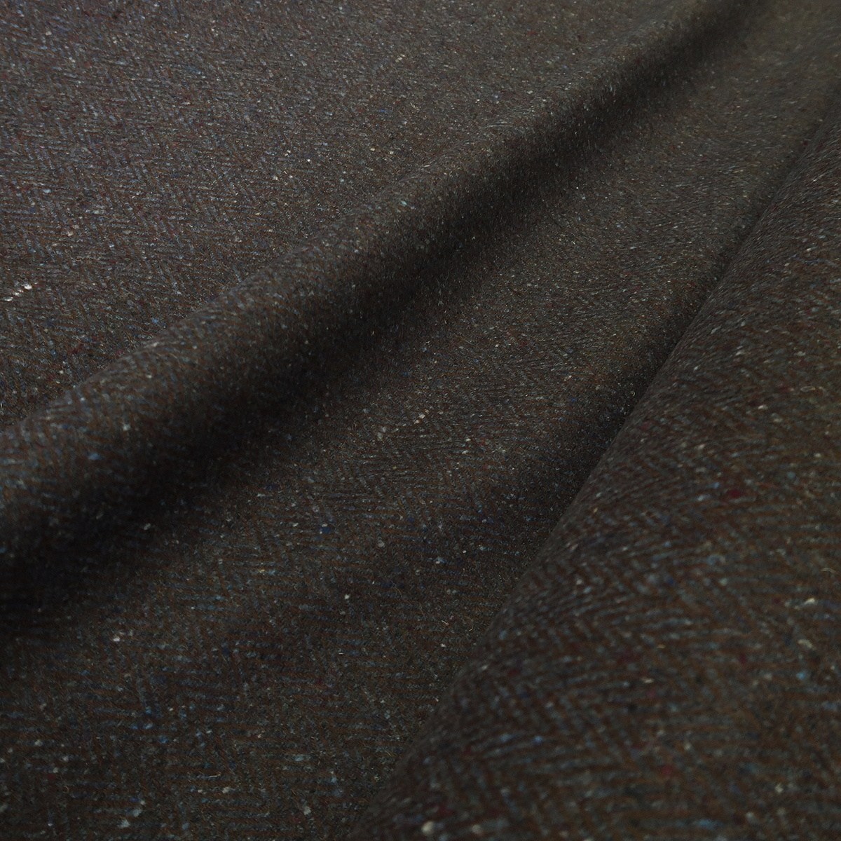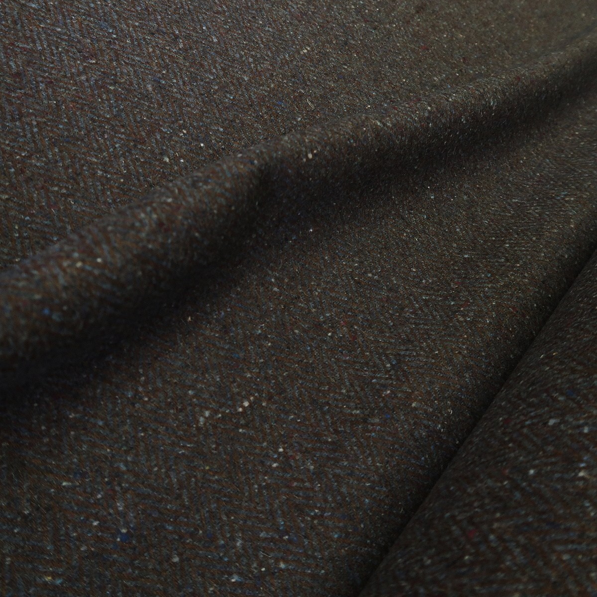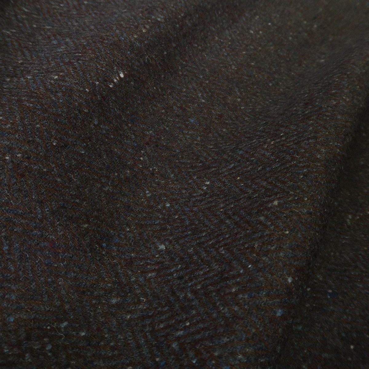 Tvíd modrý s hnědou rybí kostí je slabší kabátová vlněná látka o gramáži cca 330 g/m2. Je vhodná na saka, bundy nebo zimní sukně.