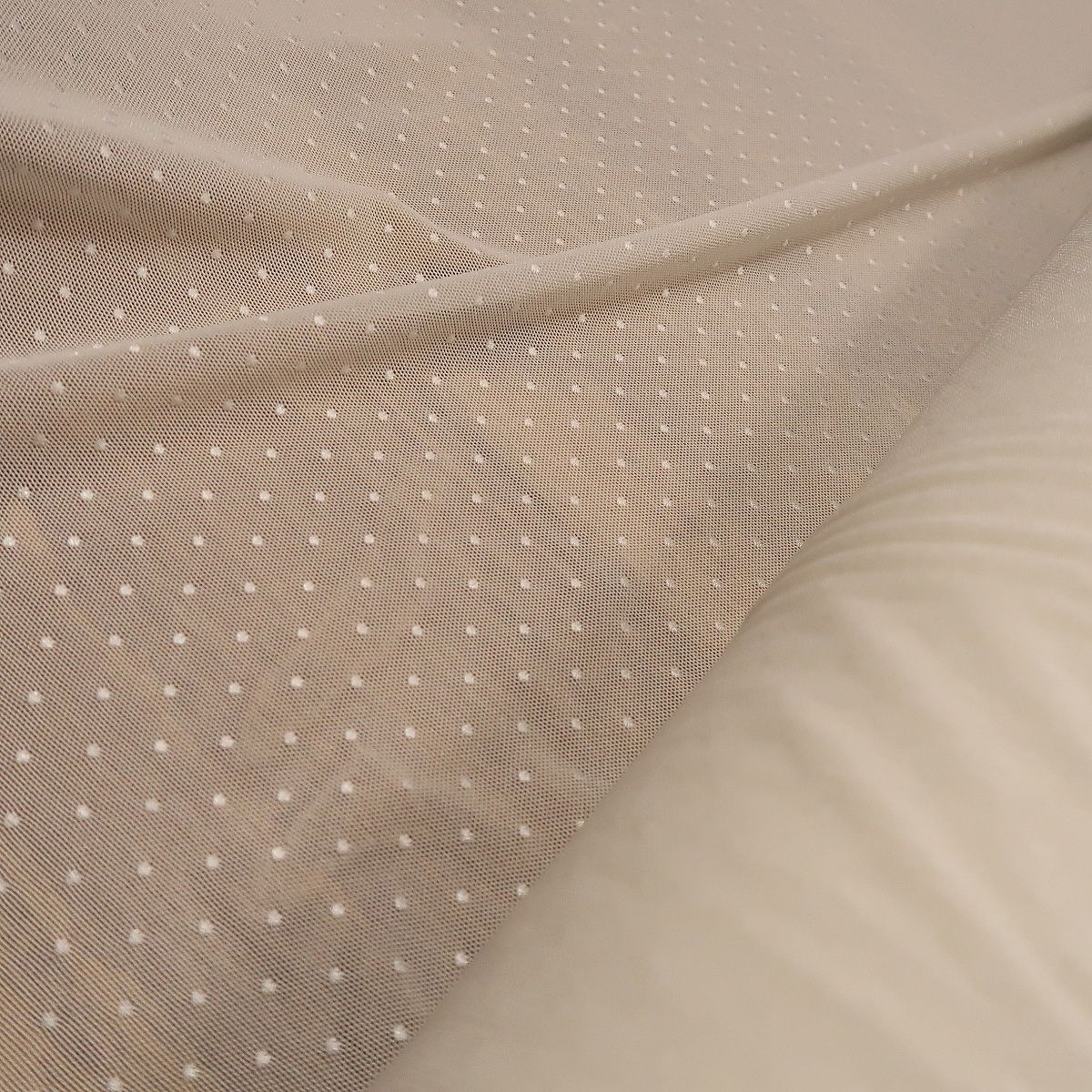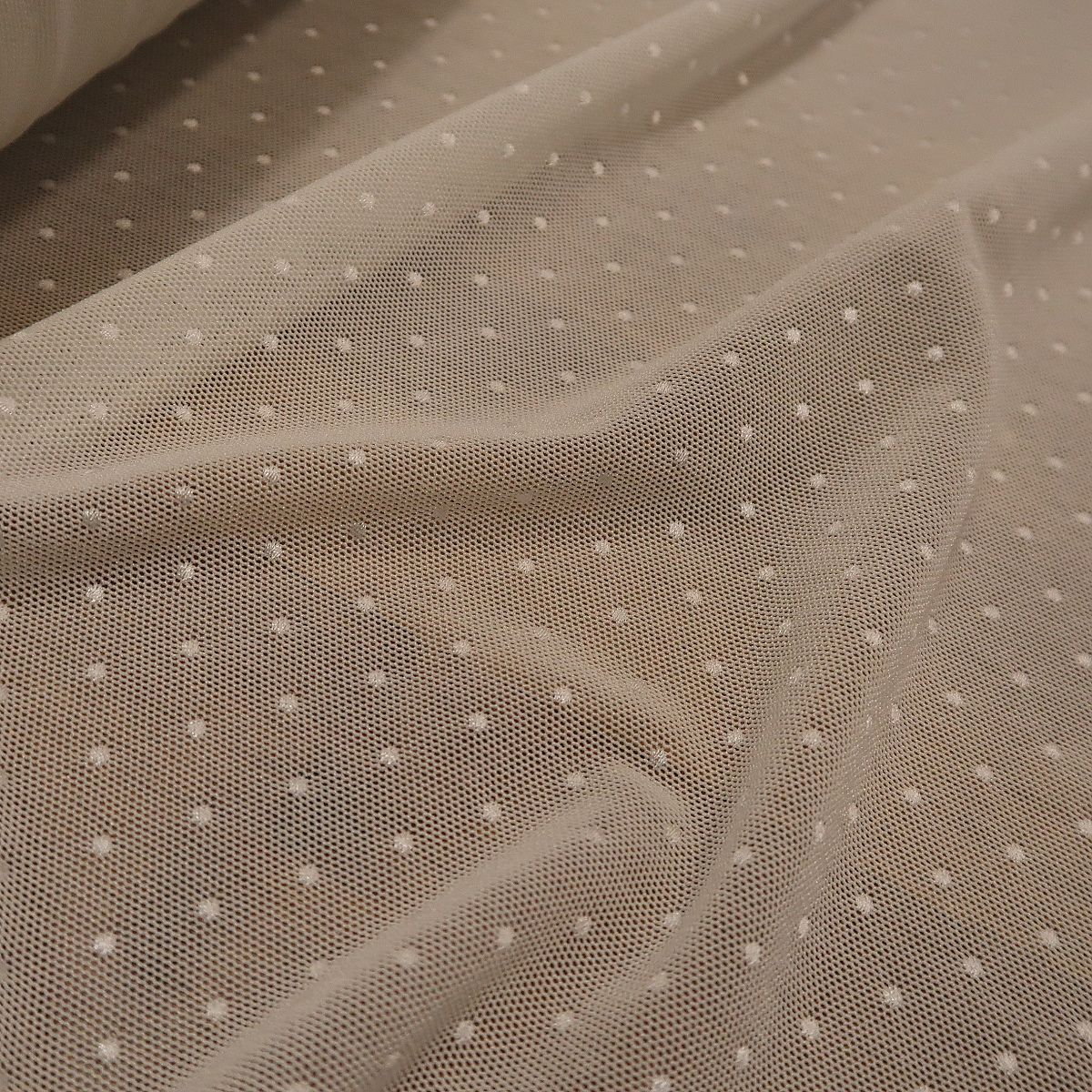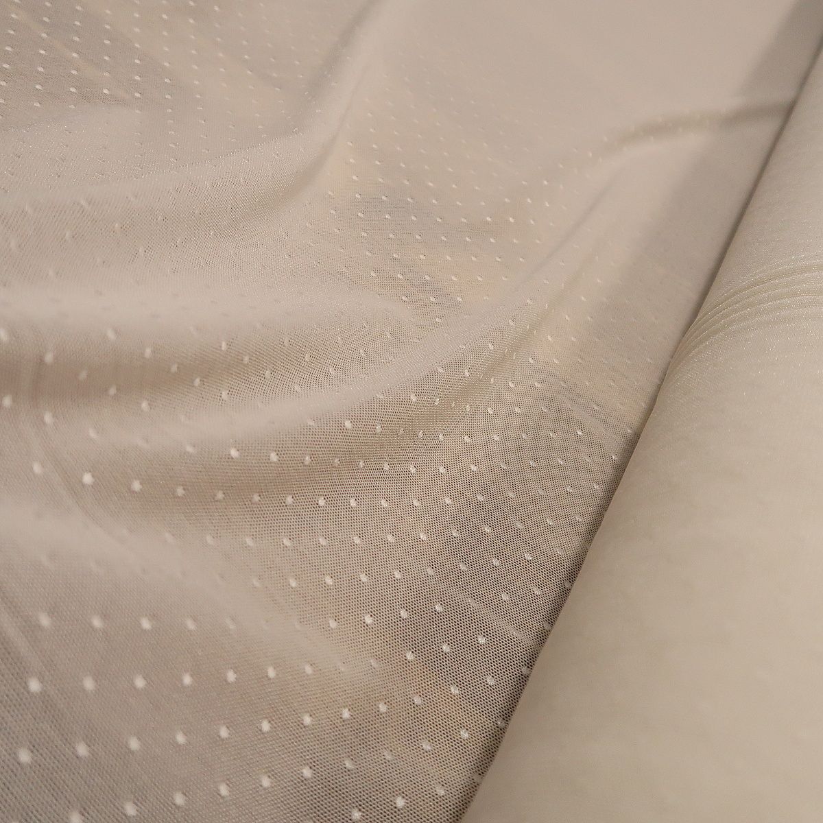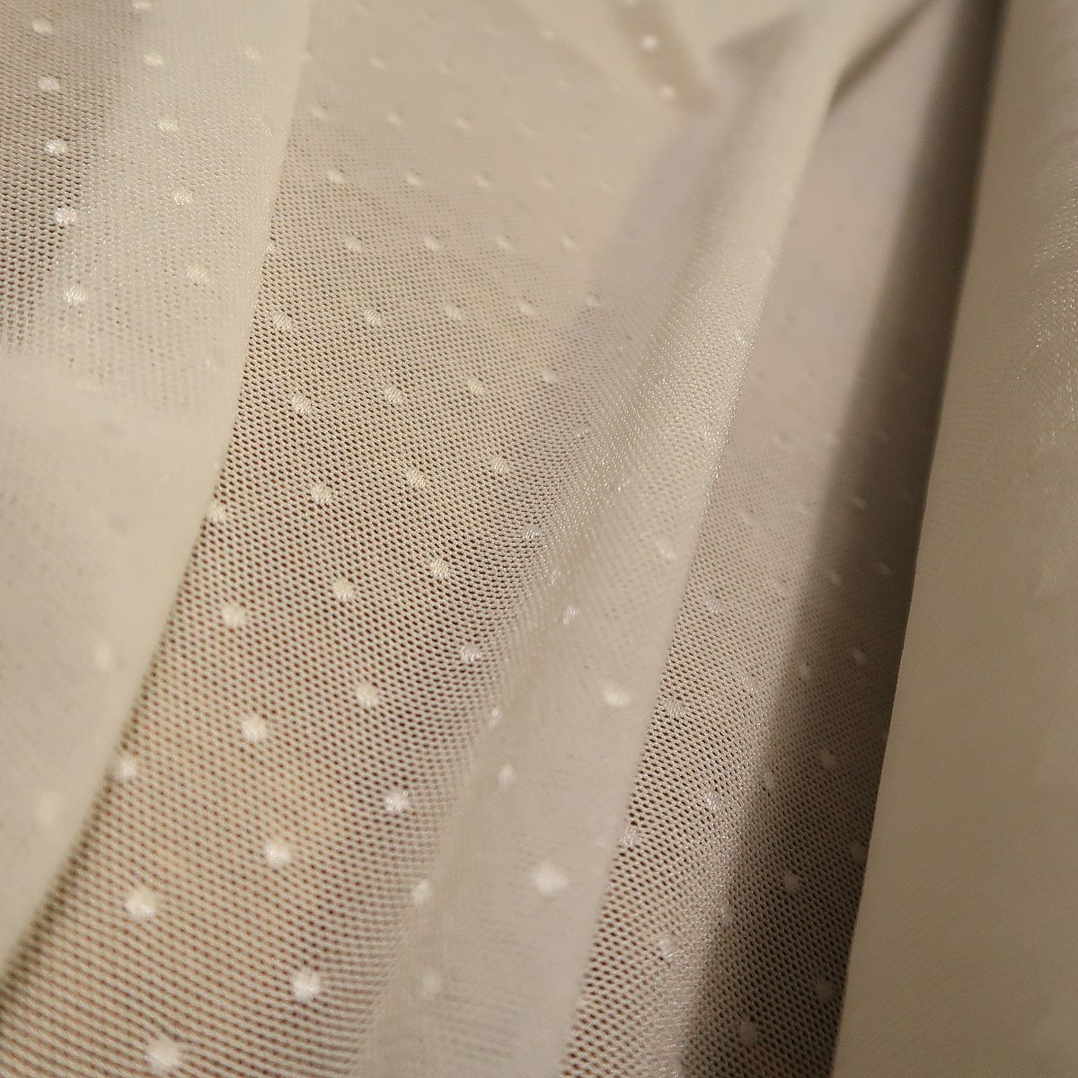 Tyl bílý pružný s puntíky je látka vhodná i na uplejší modely nebo na spodní prádlo. Gramáž je cca 160 g/m2.