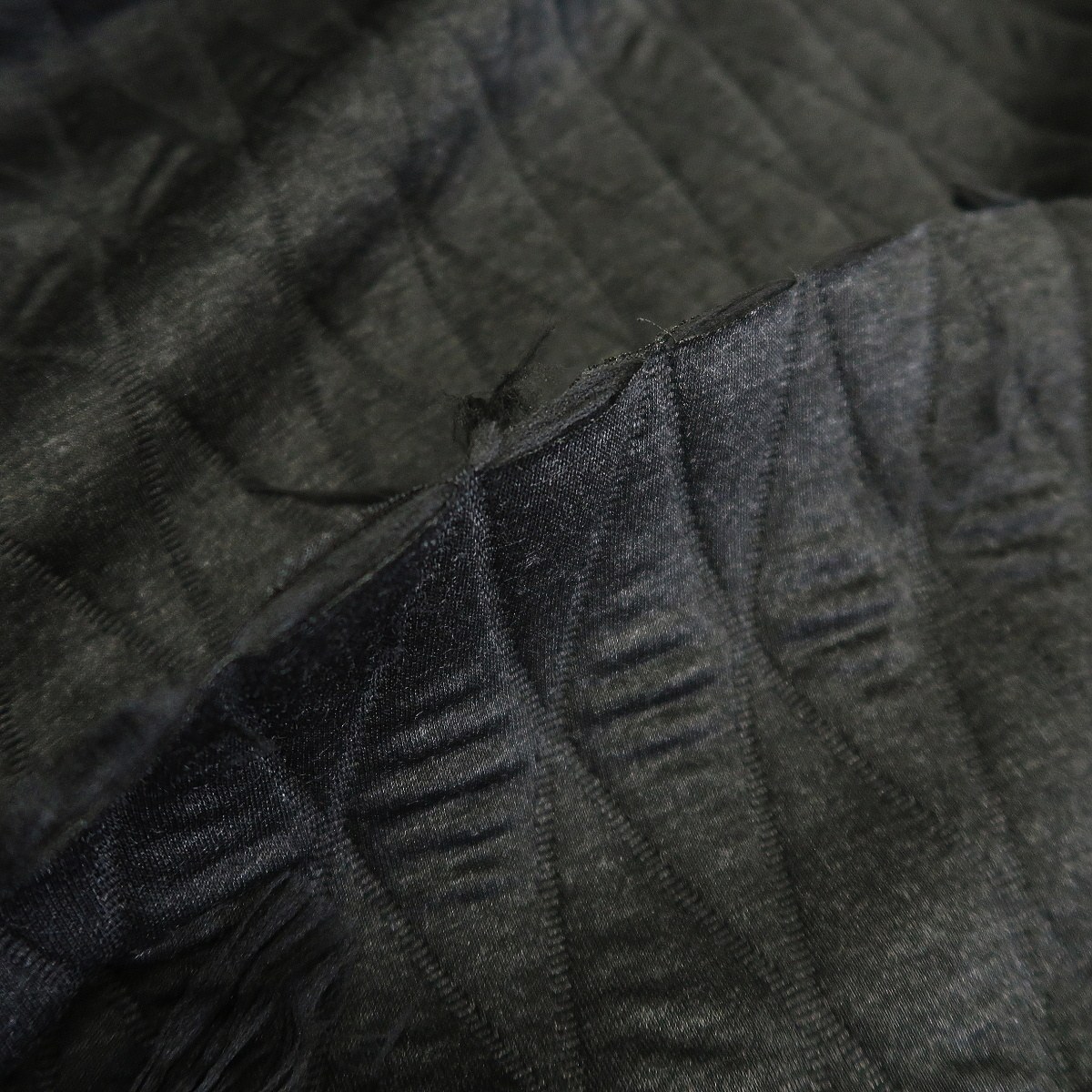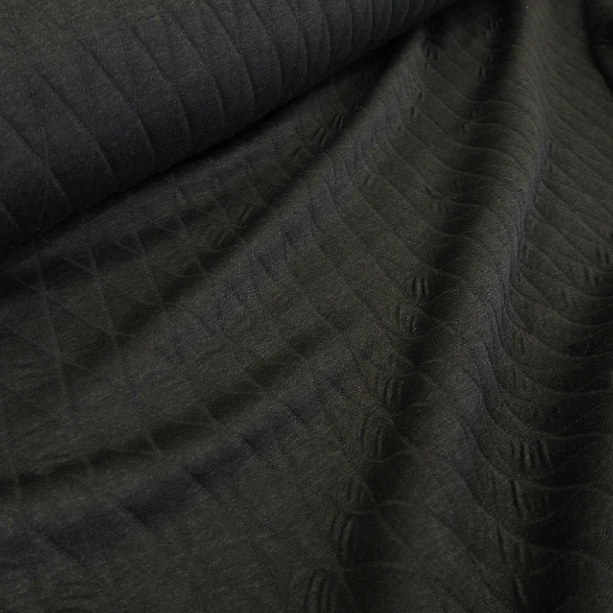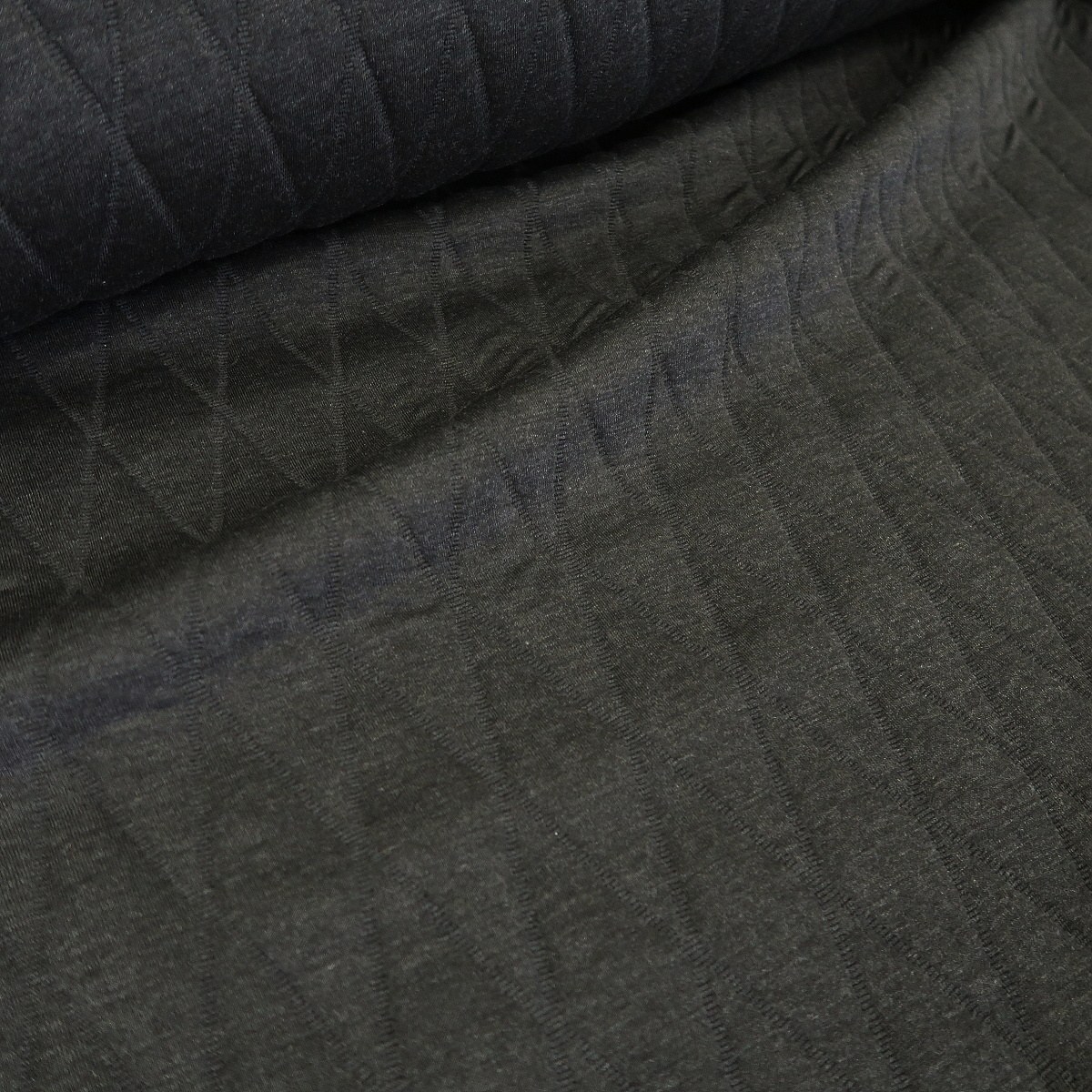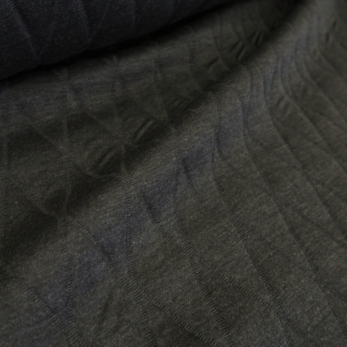 Úplet antracitově šedý á la prošev je hutná, oboustranná látka. Z obou stran je stejná. Je tvořen ze tří vrstev – antracitový úplet, duté PAD vlákno a poté zase antracitový úplet. Prositá je z obou stran. Gramáž je cca 680 g/m2.