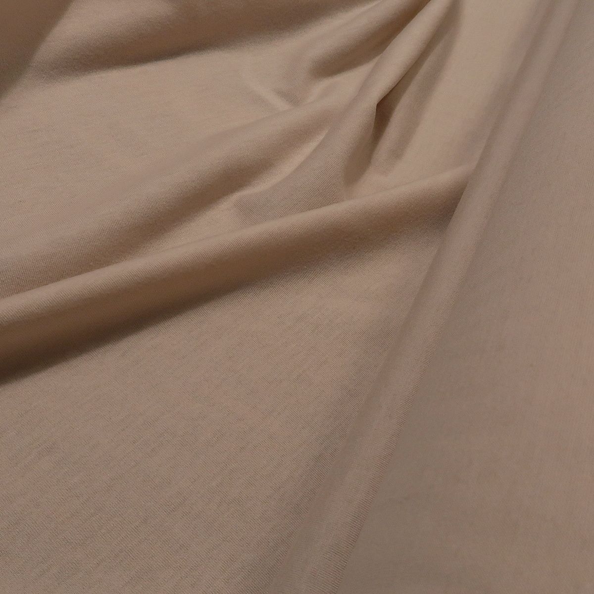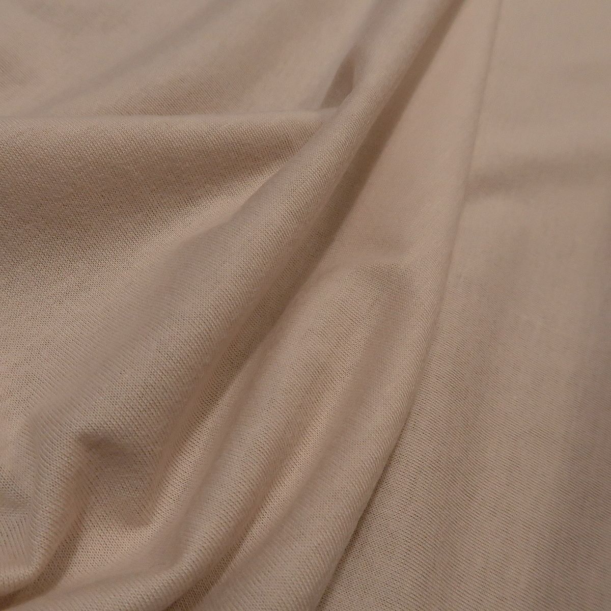Úplet pudrový bavlněný pruží pouze podélně. Je bez přídavku elastanu. Gramáž je cca 140 g/m2.